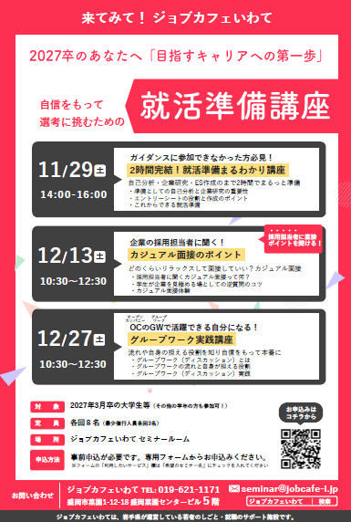 2027年卒業予定の学生対象の就職準備講座です。