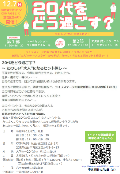 第1部では、岩手で活躍する先輩たちが「20代をどう過ごした?」を本音で語ります。