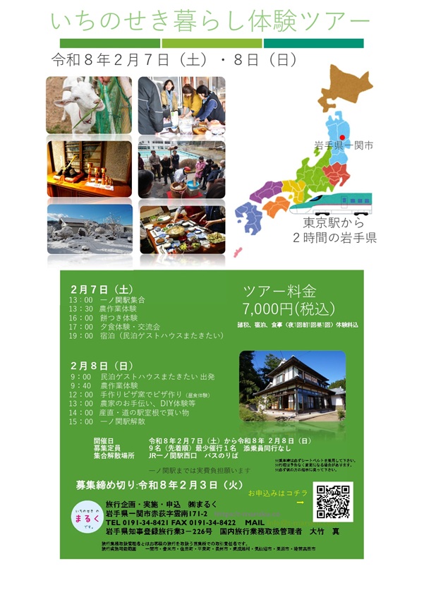 一関市で、地域の魅力をたっぷり体験できる1泊2日のツアーが開催されます! ※前回ツアーの様子が分かる動画もご覧ください! |