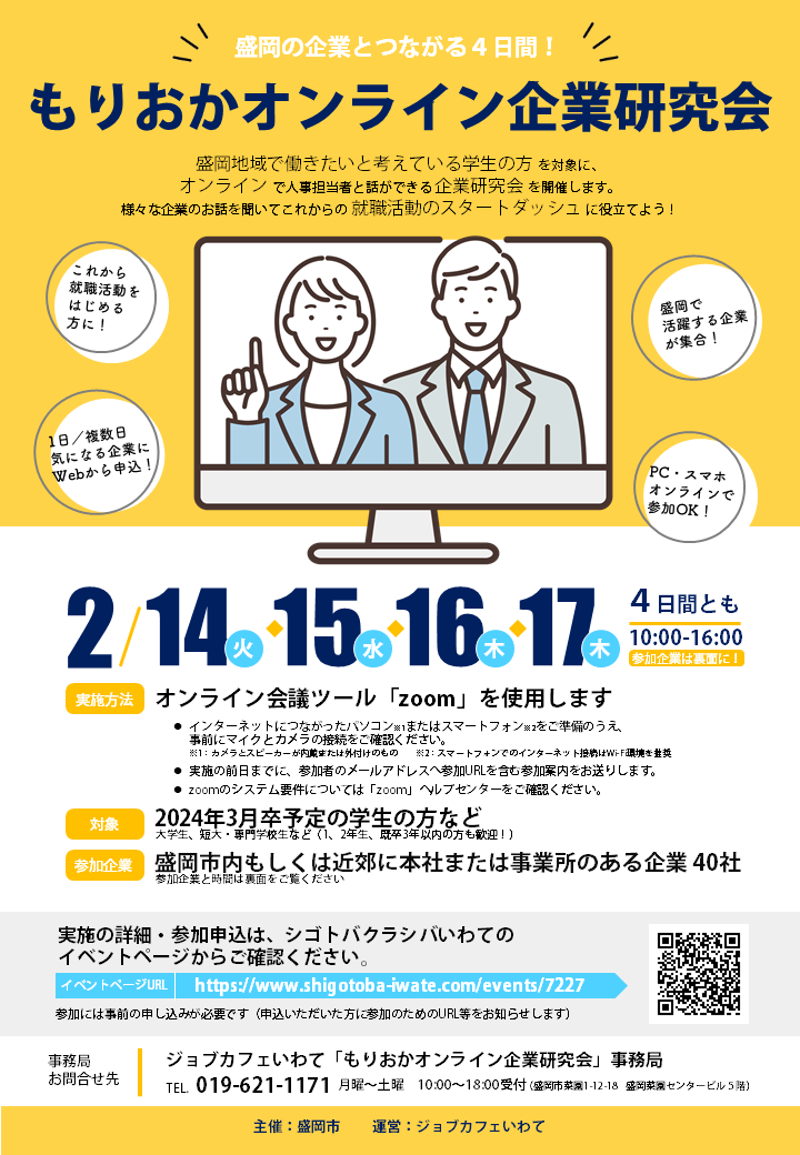 ジョブカフェいわて「いわての企業研究オンライン 4DAYS」事務局